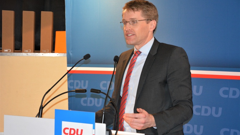 Daniel Günther griff die Jamaika-Verhandlungen in seiner Rede auf. In Schleswig-Holstein habe man sich anders respektiert als in Berlin. Es könne nicht sein, dass ein vertrauliches Wort einen Moment später vom politischen Gegenüber in alle Welt hinaus getwittert werde. Allerdings seien Äußerungen wie der „Zwergenaufstand“ auch nicht ideal gewesen. „Manchmal hilft es, einfach einmal die Klappe zu halten“, stellte der MP unter Beifall fest. Kritisch setzte er sich mit Forderungen nach einer Minderheitsregierung auseinander. Wenn bereits Koalitionsverhandlungen von vier Parteien gescheitert seien, wie sollten verlässliche Ergebnisse in einem Parlament erzielt werden, in dem noch mehr Parteien vertreten seien? In sofern sei er für eine Große Koalition. „Europa braucht ein verlässliches Deutschland und keine Neuwahlen!“ Dabei seien Kompromisse erforderlich. Auch in Schleswig-Holstein habe die CDU so manche Kröte schlucken müssen. Dies gelte aber auch für die anderen Parteien. So aber habe die CDU mehr Stellen für Polizisten, Staatsanwälte und Richter durchgesetzt und Mittel für die Sanierung von Straßen.