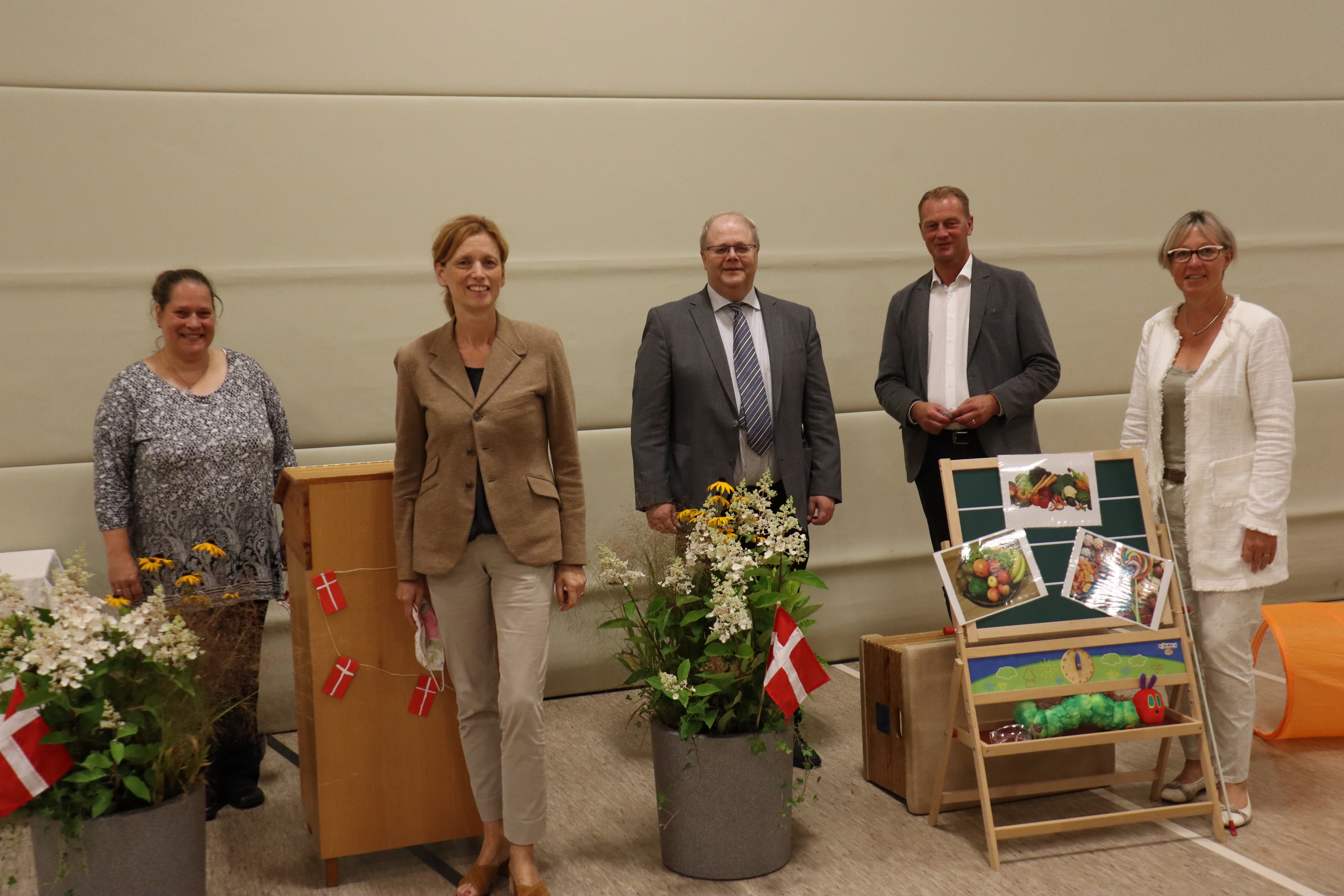 In der Böklunder Auenwald-Grundschule zeichnete Bildungsministerin Karin Prien die ersten sieben Modellgrundschulen für die Nachbarsprache Dänisch aus. Sie hob dabei die Bedeutung der Sprachenvielfalt in Schleswig-Holstein hervor und dankte den beteiligten Schulen für ihr Engagement, das auch zum gegenseitigen Verständnis beitrage. Als Minderheitenbeauftragter der Landesregierung machte Johannes Callsen deutlich, dass solche konkreten Anlässe der Förderung unserer Nachbarsprache gerade im deutsch-dänischen Freundschaftsjahr von besonderer Bedeutung seien und den Mehrwert der Nachbarsprache deutlich machen.