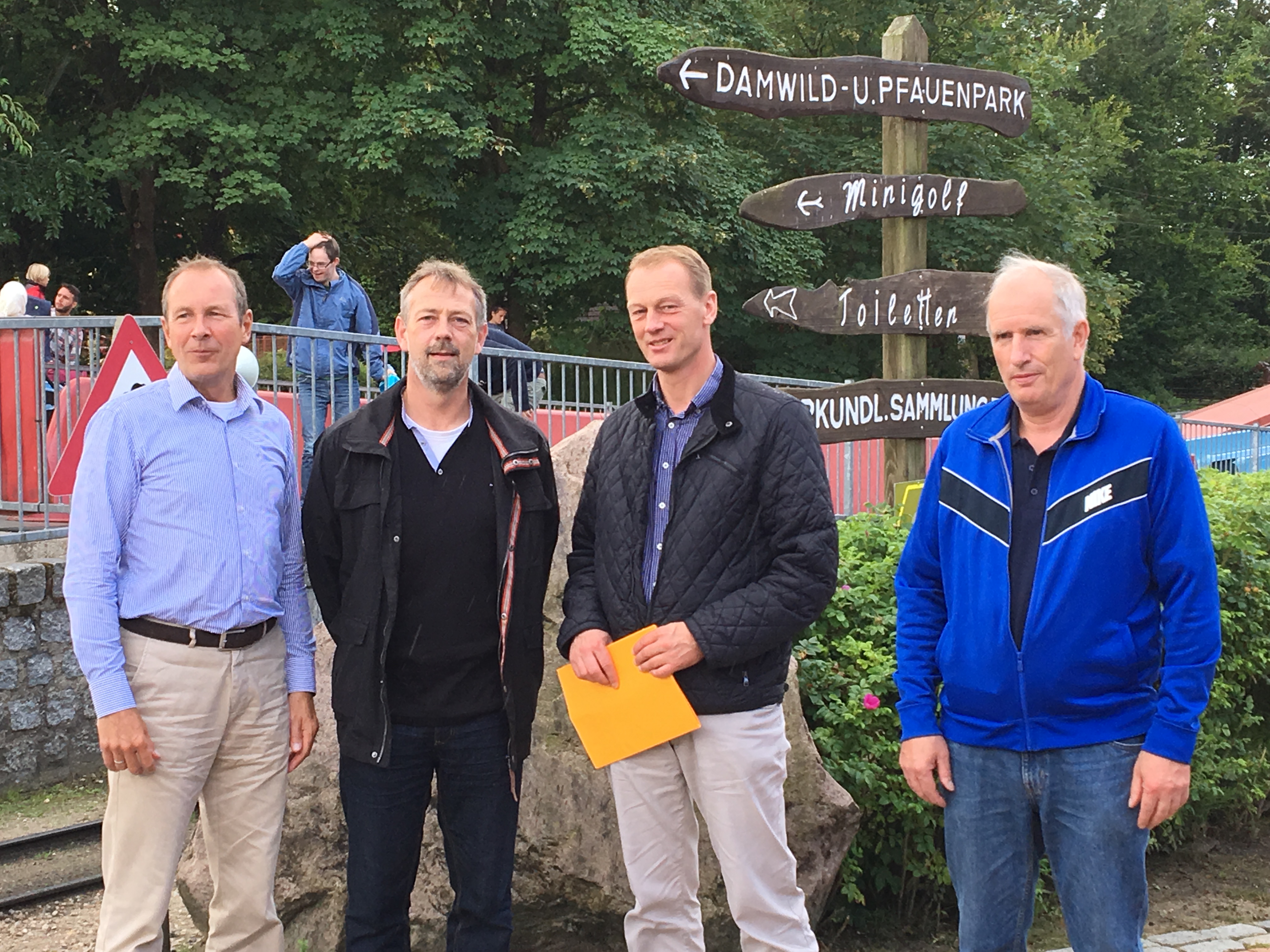 Zu einem Gespräch mit dem Tolk Schau Eigentümer Herrn Petersen und seinem Geschäftsführer Herrn Erichsen trafen sich gestern der Landtagsabgeordnete Johannes Callsen mit seinen Kollegen aus dem Schleswiger Kreistag, Rainer Haulsen und Mario de Vries, um sich über die aktuelle Situation zu informieren. Nach einem Rundgang über das Tolk Schau-Gelände, das bereits ab 10 Uhr von vielen Gästen besucht wurde, erläuterten Petersen und Erichsen die Schwierigkeiten bei geplanten Erweiterungen. Die Politiker sagten zu, sich bei weiterem Bedarf gern für die Tolk Schau einzusetzen.