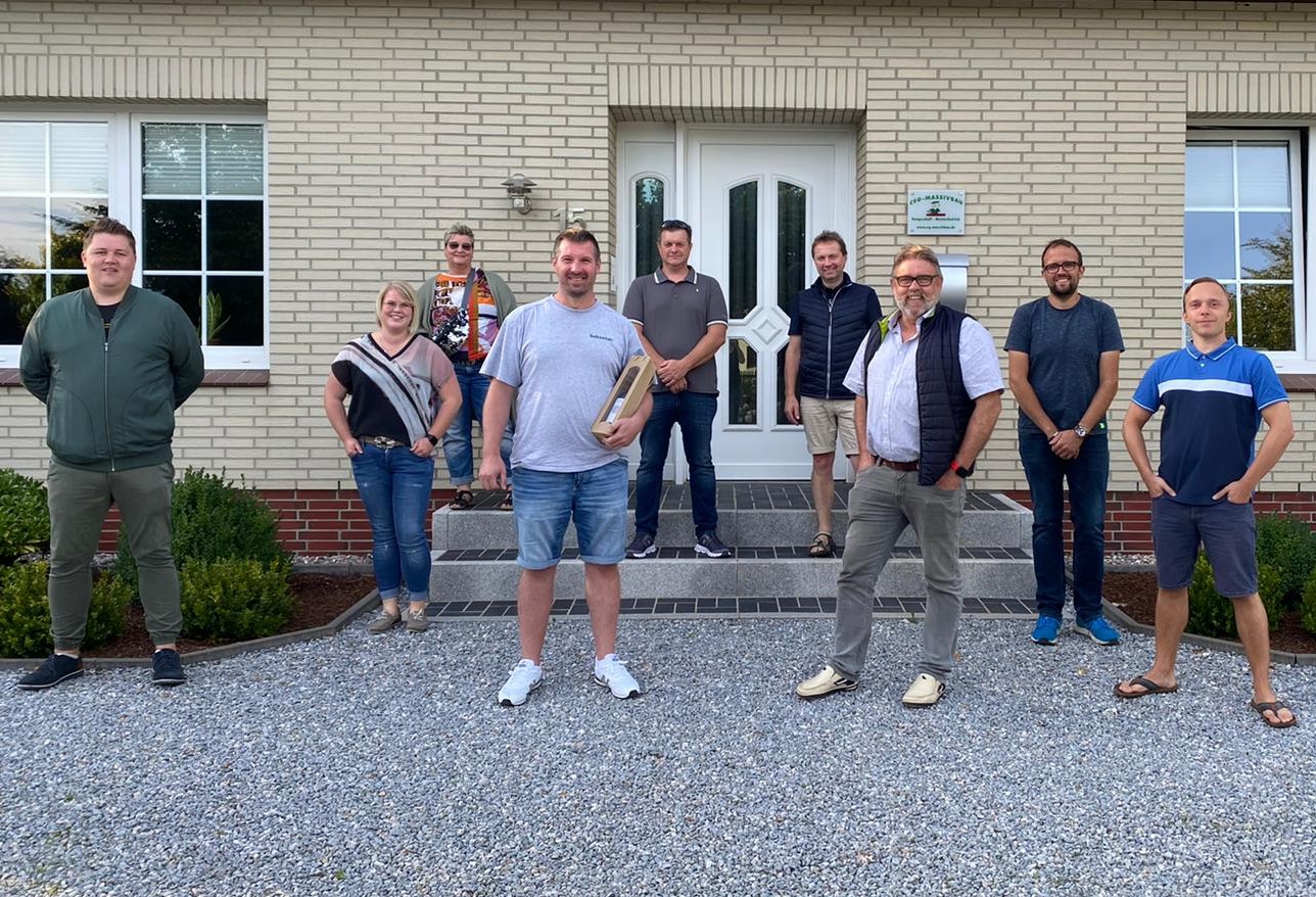 So fiel die Wahl für den ersten Besuch auf die Firma CSG-Massivbau an der Dorfstraße im Ortsteil Bollingstedt. Ein Handwerksbetrieb, welcher nicht nur 38 Arbeitsplätze in den Ort gebracht hat, sondern auch das Ortsbild deutlich aufwertet. Firmenchef Sebastian Carstensen nahm sich bei bestem Wetter gerne Zeit, seinen seit 2015 in Bollingstedt ansässigen Betrieb vorzustellen. Die Beteiligten zeigten sich beeindruckt angesichts der großen Veränderungen der Gebäude und Grundstücke in der vergleichsweise kurzen Zeit. Dabei ließ Sebastian Carstensen klar erkennen, dass er mit seinen Planungen noch nicht am Ende ist: „Ich habe mir das Ziel gesetzt in 10 Jahren fertig zu sein und freue mich jeden Tag über das was wir schon geschafft haben.“ Bei den aufwendigen Umbauarbeiten war dem Firmenchef wichtig, die bestehende Substanz der alten Gebäude so gut es eben geht zu nutzen. Das jüngste abgeschlossene Projekt ist der Umbau einer alten Fahrsiloanlage zu hochwertigen Lagerhallen. Durch das große Gelände ist es nicht nur möglich Lagerhallen zu vermieten, sondern auch Baumaterial einzulagern. So können den Kunden bei möglichst geringen Kosten zügig fehlende Dachpfannen oder auch Steine geliefert werden.