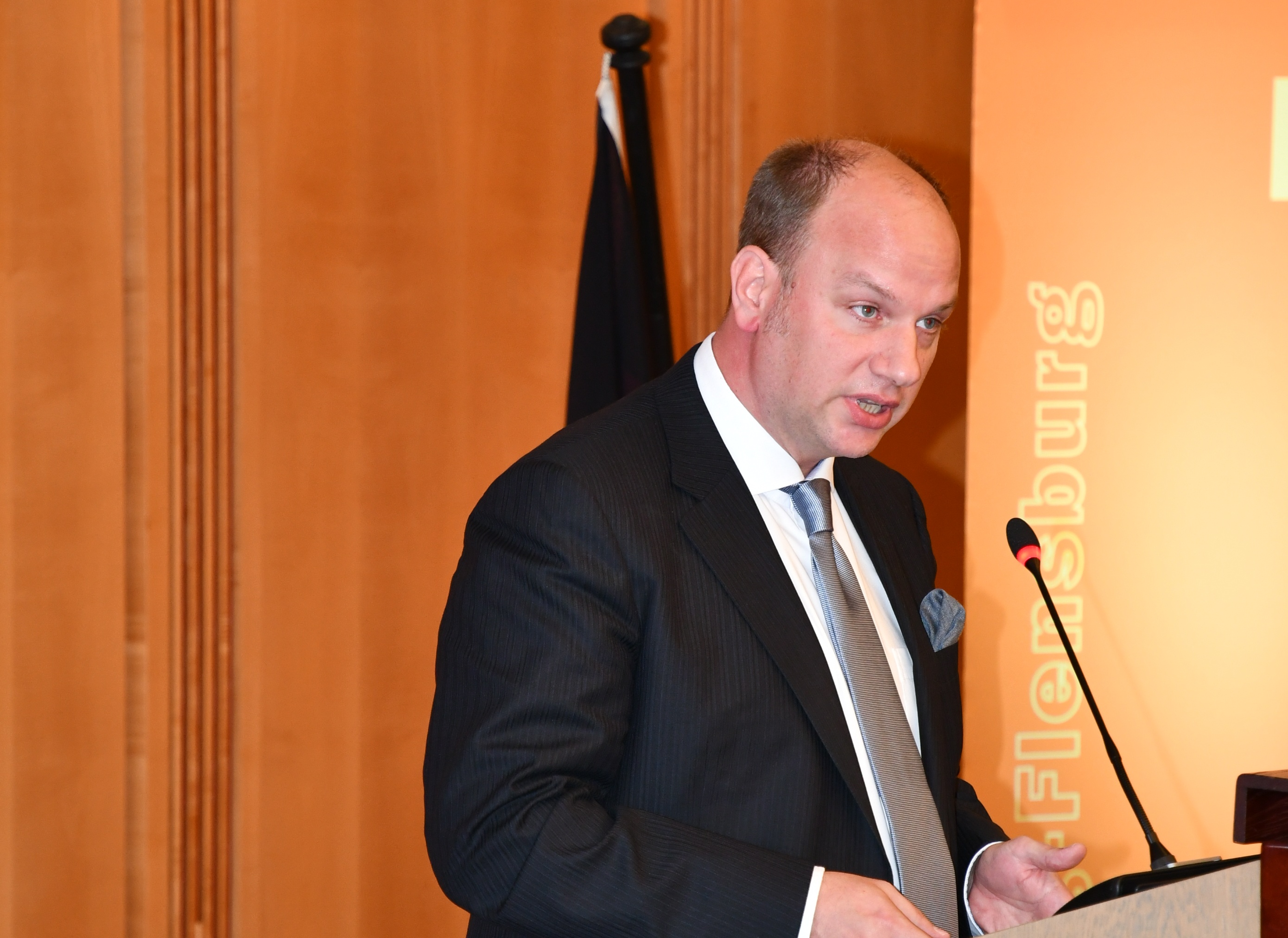 Nunmehr zum 28. Mal hat die CDU-Schleswig-Flensburg – diesmal gemeinsam mit dem Kreisverband Flensburg – dem Tag der Deutschen Einheit feierlich gedacht. Der Festakt im Kay-Nebel-Saal des Schleswiger Kreishauses stand dabei ganz im Zeichen der Europapolitik. Niclas Herbst, Spitzenkandidat der Union für die Europawahl und in unmittelbarer Nähe zur Zonengrenze aufgewachsen, berichtete, wie er ganz persönlich die Stunden der Grenzöffnung erlebt hatte. Es mache ihn traurig, dass „wir möglicherweise auf dem Weg in einen neuen kalten Krieg“ seien. Die Verschiebung der Grenze auf der Krim durch Gewalt, aber auch die Großmanöver von Nato und Rußland seien hierfür beunruhigende Zeichen. Eindringlich appellierte Herbst, dass Demokratie und Freiheit immer aufs Neue verteidigt werden müssten.
