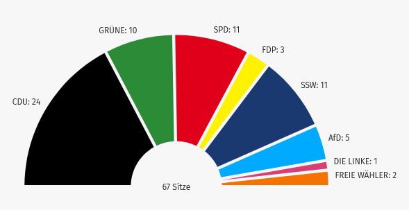 Bei der Kreistagswahl konnte die Union 24 der 25 Wahlkreise direkt gewinnen, lediglich ein Wahlkreis ging an den SSW. Aufgrund dieses guten Direktwahlergebnisses wächst der Kreistag durch viele Ausgleichsmandate für die anderen Parteien von 40 auf 67 Abgeordnete.