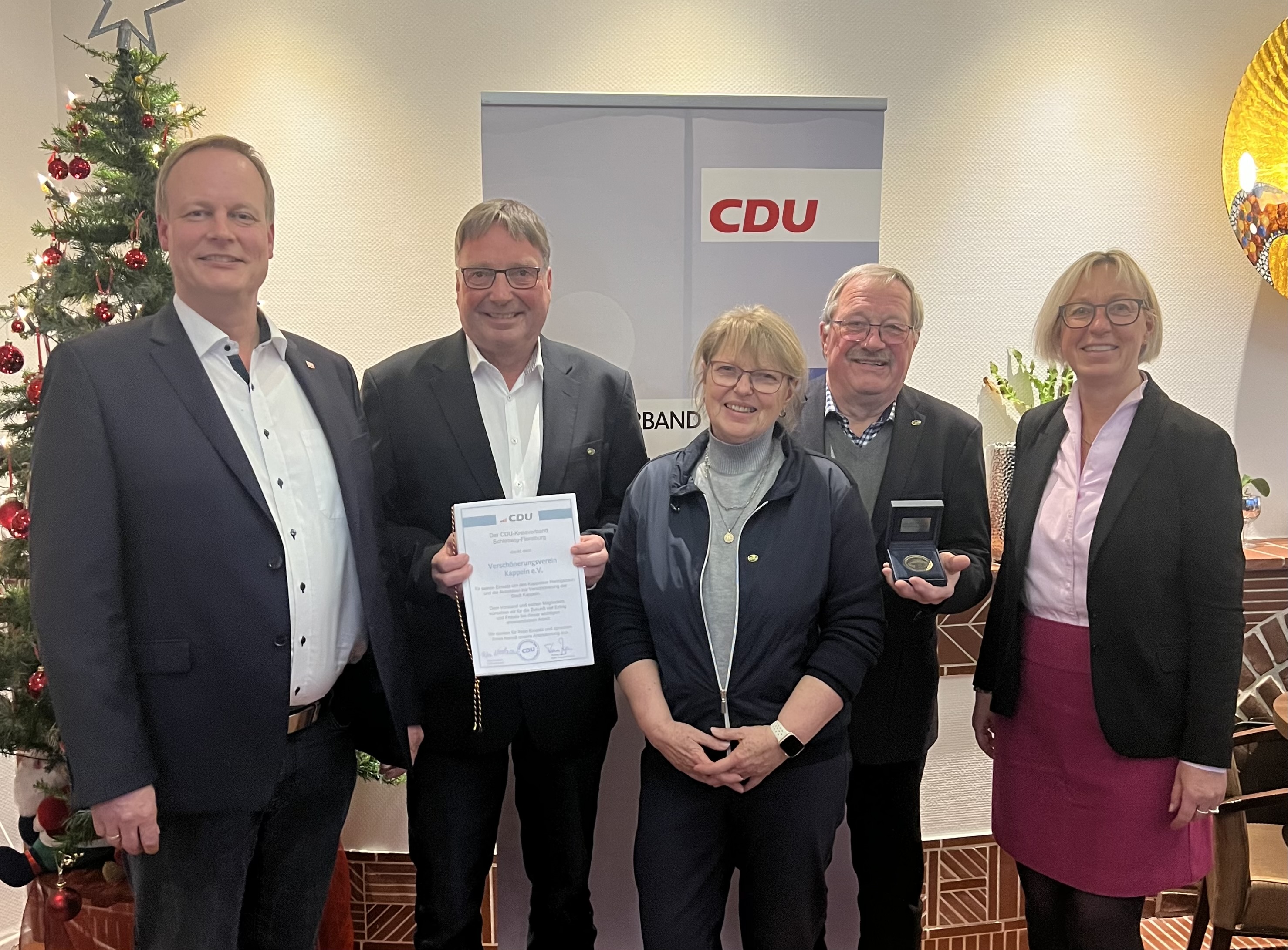 Seit vielen Jahren verleiht der CDU Schleswig-Flensburg zum bundesweiten Tag des Ehrenamtes die "Ehrenamtsmedaille des CDU-Kreisverbandes". Der guten Tradition folgend hatte sich der Kreisvorstand mit den unterschiedlichsten Vorschlägen beschäftigt und sich dann einstimmig dafür ausgesprochen, in diesem Jahr den Verschönerungsverein Kappeln e.V. diese Anerkennung auszusprechen und für das ehrenamtliche Engagement Danke zu sagen.