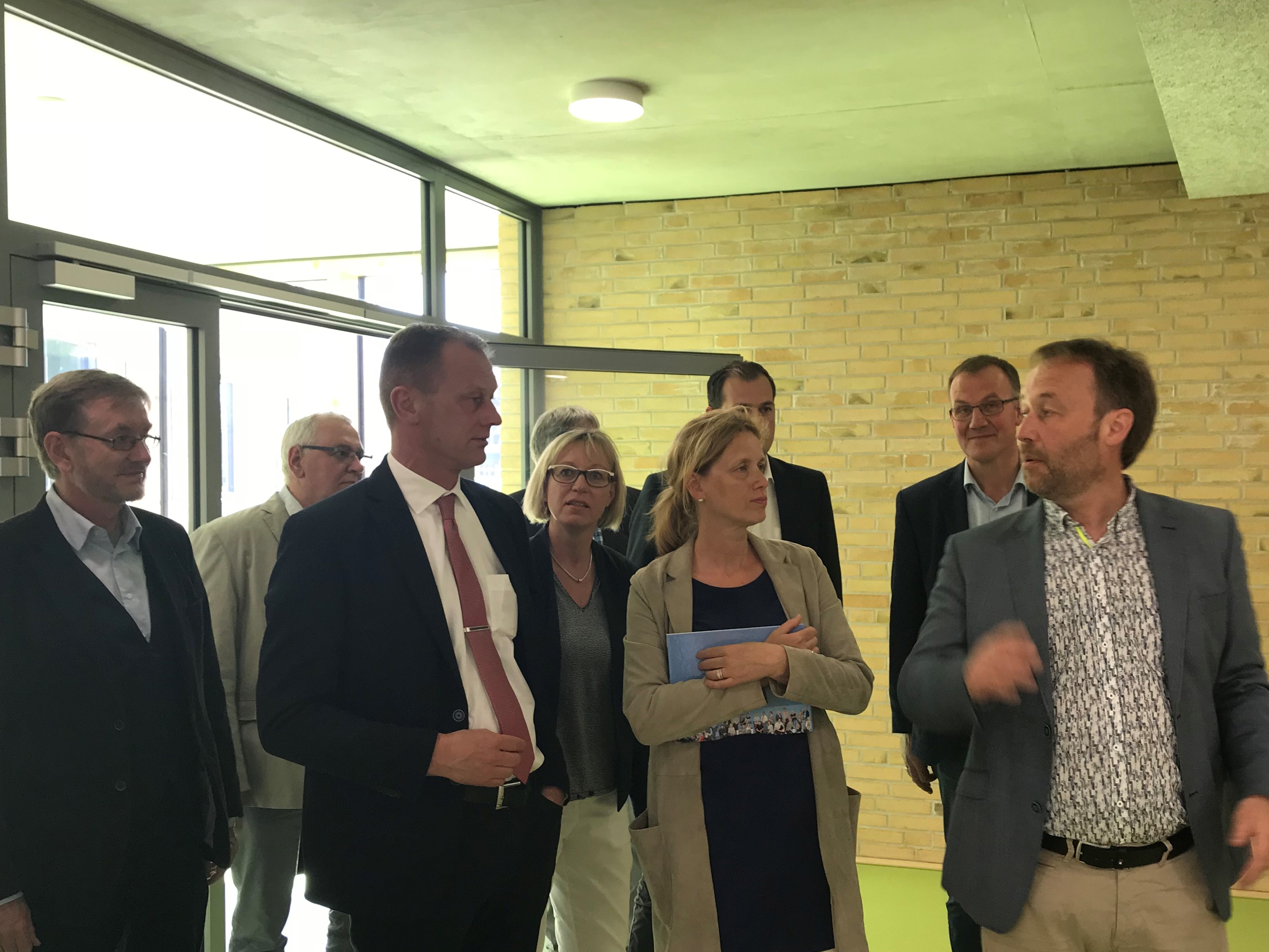 Herausforderungen im ländlichen Raum: Besondere Hochachtung zeigte die Ministerin vor dem Beteiligungsprozess, der zum Bau der Nordlicht-Schule führte. „Die Art und Weise, wie dieses Projekt zustande gekommen ist, davon kann man im Lande erzählen“, bemerkte sie. Denn dabei sei es ja auch um die Auflösung von Kleinschulen gegangen, so Prien. „Ich denke, die Ministerin hat von diesem wichtigen Projekt der Schulentwicklung einen guten Eindruck mit nach Kiel genommen“, fasste Callsen zusammen. Denn was hier geschaffen werde, sei eine tolle Antwort auf die Herausforderungen für Schulen im ländlichen Raum. Auch sei klar geworden, dass es im ländlichen Raum Probleme gebe, auf die pädagogisch und schulpolitisch reagiert werden müsse, sagte Callsen weiter.