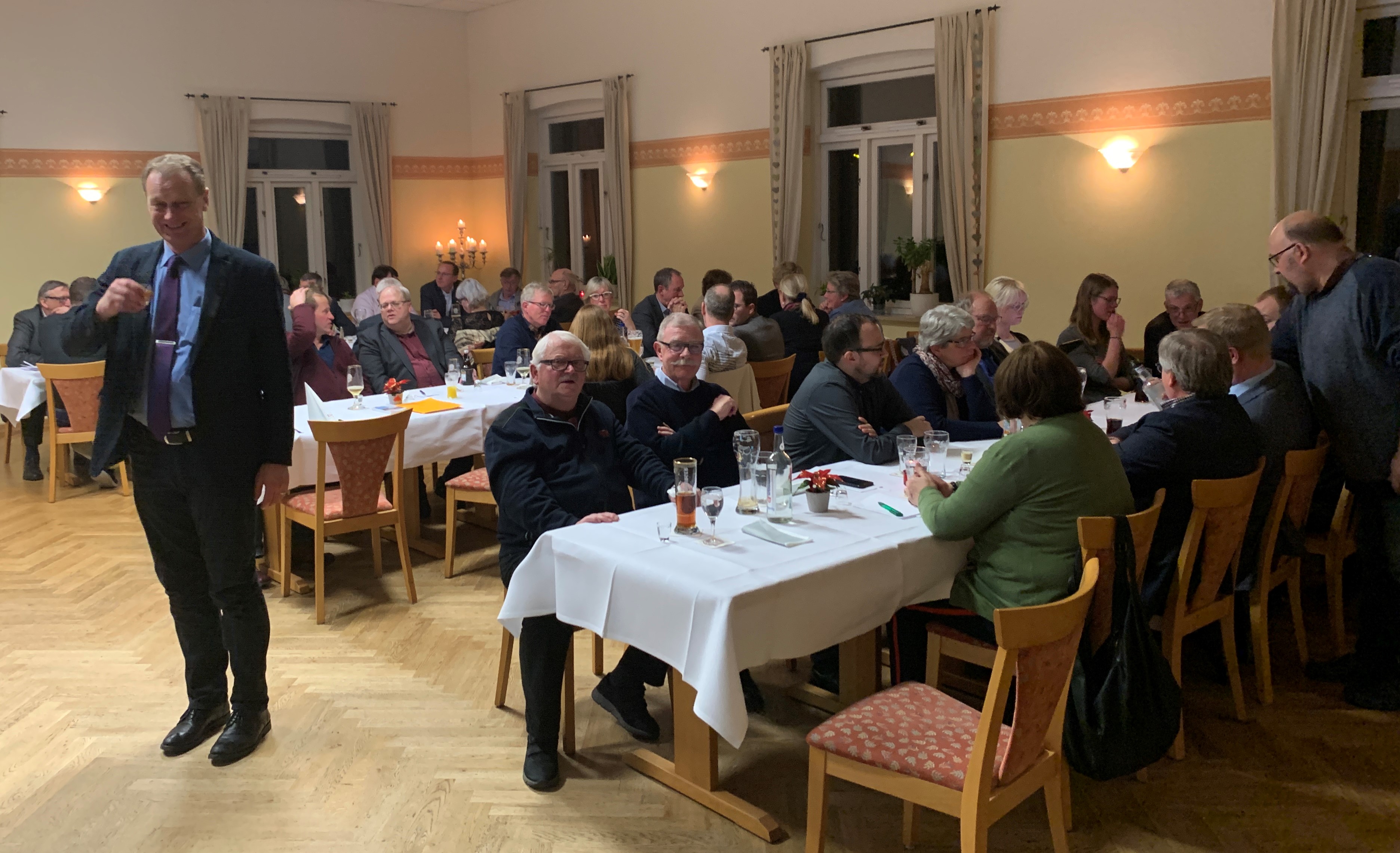 Gut 50 Vorsitzende waren der Einladung des Kreisvorstandes zur Orts- und Bezirksvorsitzendenkonferenz in den „Lindenhof“ nach Böel gefolgt. In seiner Begrüßung ging Kreisvorsitzender Johannes Callsen auf die Beratungen zum Finanzausgleichsgesetz und die KiTa-Reform ein. „Mit der KiTa-Reform 2020 gelang der Durchbruch für eine vollkommene Neuordnung der Finanzierung von Krippen und KiTas in Schleswig-Holstein. Es ist ein echter Meilenstein, dass sich alle Beteiligten hierauf weitgehend einvernehmlich verständigt haben“, so Johannes Callsen weiter. „Zwar sind nicht alle Gemeinden begeistert, aber die überwiegende Zahl kann mit den neuen Regelungen gut leben. Die Reduzierung der Elternbeiträge werde mit der vorgesehenen Deckelung der Beiträge erreicht, die unterhalb der bisherigen Durchschnittsgebührensätze liegen. Darüber hinaus seien die Schaffung des Platz-Wahlrechtes und die Reduzierung der Schließzeiten echte Verbesserungen für die Eltern.“ Sowohl bei den notwendigen und wichtigen Maßnahmen zum Klimaschutz wie auch der angespannten Situation der Landwirtschaft forderte Johannes Callsen, dass die Politik dabei besonders auch die Menschen im ländlichen Raum im Blick haben müsse. Nach einem Rübenmusessen vom Lindenhof-Chefkoch und Betreiber Marcus Eich stellte der Landtagsabgeordnete Andreas Hein die Pläne zur Erzeugung von grünem Wasserstoff dar. „Wir hätten in Schleswig-Holstein ausreichend Windstrom durch die Onshore und Offshore-Anlagen zur Verfügung, der in klimafreundlichen Wasserstoff umgewandelt werden könnte. Dann müssten auch keine Anlagen mehr abgeschaltet werden“, dazu gibt es vielfältige Projekte, erläuterte Andreas Hein. „Beispielsweise die Kombination aus Windstrom, Raffinerie und dem Zementwerk bieten deutschlandweit die besten Voraussetzungen um klimafreundlich synthetische Kraftstoffe, wie z.B Kerosin für den Hamburger Flughafen herzustellen. Die Gespräche“, so Hein weiter,“ werden nicht nur in Deutschland auf höchster politischer Ebene geführt. Auch mit weltweit aktiven Firmen und Investoren stehen wir im ständigen Austausch.“ Wir wollen die Nutzung unserer erneuerbaren Energie vor Ort, die Sektorenkopplung mit dem Verkehrs- und Wärmebereich hinbekommen. Unser klares Ziel ist es auch weiter, Ansiedlungen in unseren Regionen, in Schleswig-Holstein zu verwirklichen, um bestehende Arbeitsplätze zu sichern und neue zu schaffen. Die Anwesenden zeigten sich begeistert von den Planungen. Nach einigen Fragen „in großer Runde“ musste Andreas Hein noch viele Fragen im persönlichen Gespräch beantworten.